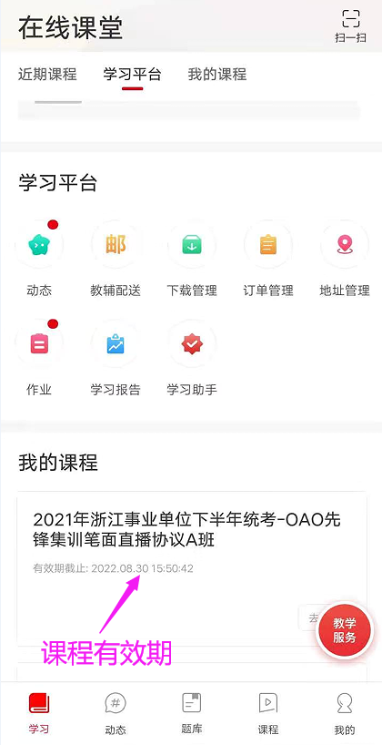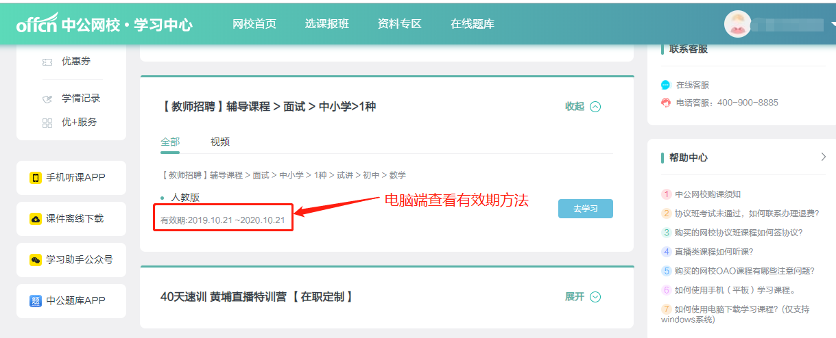 通過電腦或APP在線課堂的課程列表中,可查看課程有效期(默認(rèn)顯示開通時間起1年有效期,具體請結(jié)合上述1-5條說明及個人所購課程類型進行判別)
