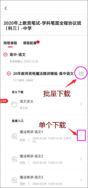 ? 講義下載:展開課程目錄,可找對講義文件夾下載對應電子講義;通過【課程配套】電子講義,可以批量下載配套講義。