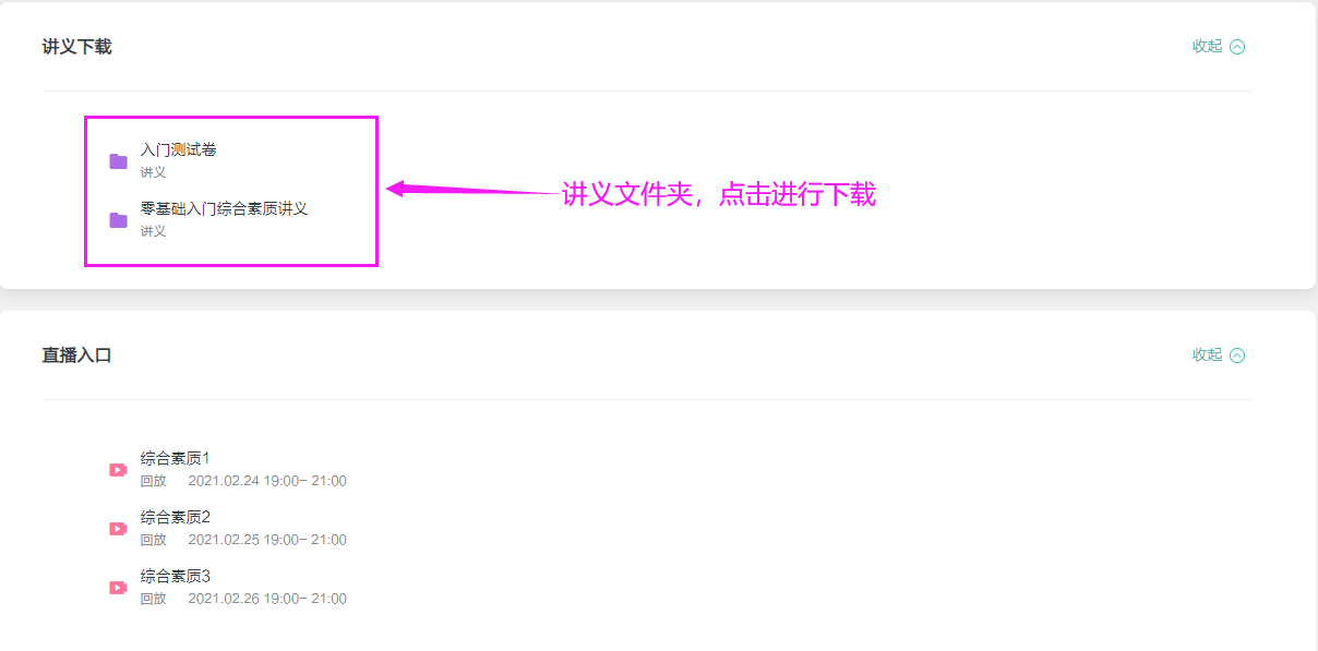 操作方法:進入課程后展示【講義下載】的位置,點擊即可下載講義。