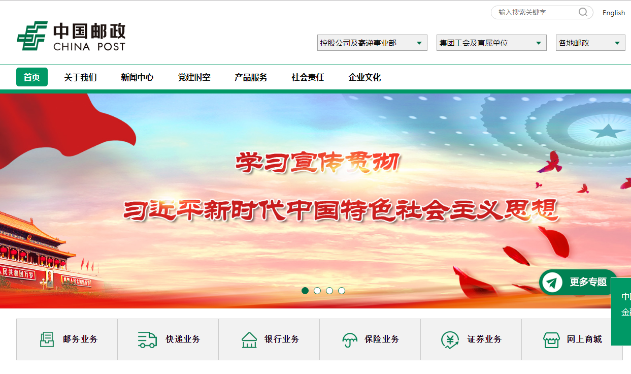 中國(guó)郵政招聘官網(wǎng)是http://www.chinapost.com.cn/,官網(wǎng)見(jiàn)下圖所示: