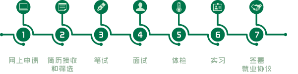 網(wǎng)上申請(qǐng)-簡歷接收和篩選-筆試-面試-體檢-實(shí)習(xí)-簽署就業(yè)協(xié)議