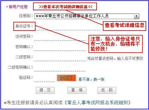 2、已注冊考生憑報名序號和密碼登錄個人信息界面,新注冊考生單擊“新用戶注冊”鏈接,進入注冊頁面,如下圖: