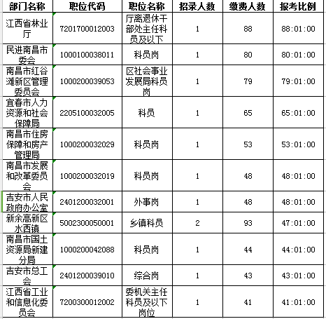 2016年江西公務(wù)員報名人數(shù)共14107:最熱競爭88:1(截止24日17時)