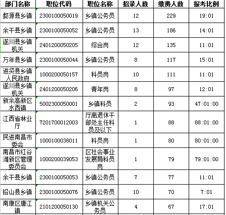 全省報考繳費人數(shù)排名前十的職位