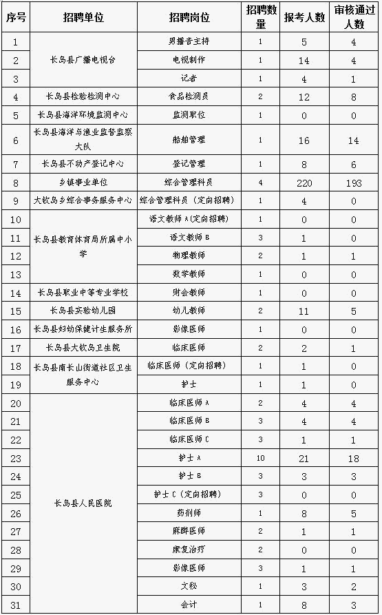 長(zhǎng)島縣事業(yè)單位招考報(bào)名情況統(tǒng)計(jì)截止:2016.4.11