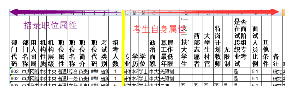 仔細(xì)研究不難發(fā)現(xiàn),國(guó)考職位表的設(shè)置是具有高度科學(xué)性的,合理有序。前面幾列是招錄職位本身的性質(zhì),如部門名稱、職位名稱、部門代碼、職位代碼、機(jī)構(gòu)性質(zhì)、機(jī)構(gòu)層級(jí)、職位屬性、職位簡(jiǎn)介、考試類別、招錄人數(shù)等;后面幾列是對(duì)考生的要求,如考生的專業(yè)、學(xué)歷、學(xué)位、政治面貌、基層工作經(jīng)驗(yàn)、是否是“四項(xiàng)目人員”等。既然知道了這個(gè)職位表布局原理,我們就能更好地入手“多快好省”地找到適合自己的職位了。