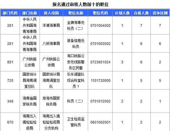 報名通過前十的職位具體信息如下: