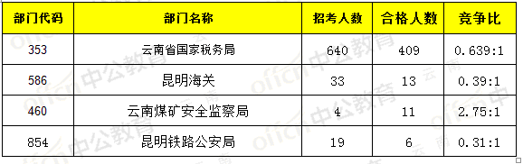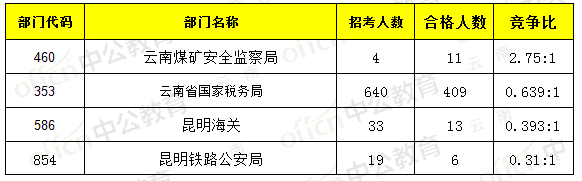 截止15日17時(shí),通過審核人數(shù)前四位的部門依次是:云南省國家稅務(wù)局、昆明海關(guān)、云南煤礦安全監(jiān)察局、昆明鐵路公安局,三部門通過審核總?cè)藬?shù)達(dá)439人,占通過審核總?cè)藬?shù)的84.42%。