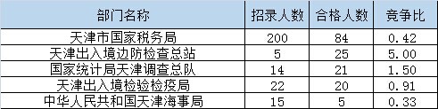 截止到15日16時(shí),通過審核人數(shù)前三位的部門依次是:天津市國家稅務(wù)局、天津出入境邊防檢查總站、國家統(tǒng)計(jì)局天津調(diào)查總隊(duì),三部門通過審核總?cè)藬?shù)達(dá)130人,占通過審核總?cè)藬?shù)的82.3%。