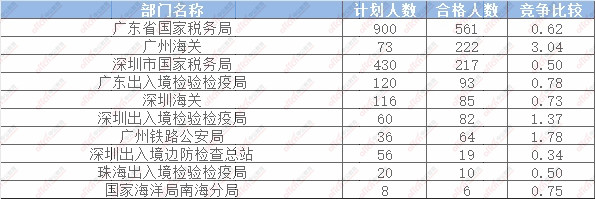 為幫助廣大考生更清晰的了解今日?qǐng)?bào)名情況,廣東中公網(wǎng)校整理了審核通過(guò)人數(shù)前十位的部門以及競(jìng)爭(zhēng)比例最激烈的十大部門,供廣大考生參考:
