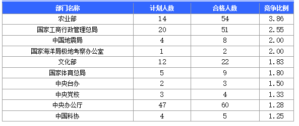 為幫助廣大考生更清晰的了解今日報名情況,北京中公網(wǎng)校整理了審核通過人數(shù)前十位的部門以及競爭比例最激烈的十大部門,供廣大考生參考: