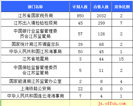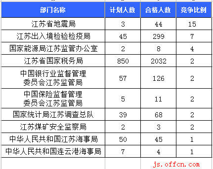 截止到16日16時(shí),通過審核人數(shù)前三位的部門依次是:江蘇省國家稅務(wù)局、江蘇出入境檢驗(yàn)檢疫局、中國銀行業(yè)監(jiān)督管理委員會江蘇監(jiān)管局,三部門通過審核總?cè)藬?shù)達(dá)2457人,占通過審核總?cè)藬?shù)的92.8%。