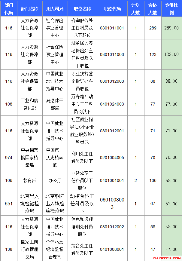 報(bào)名競(jìng)爭(zhēng)最激烈的前十的職位