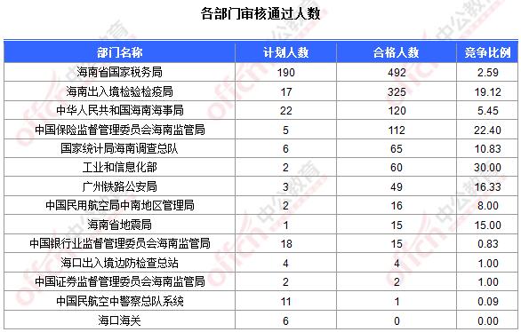 為幫助廣大考生更清晰的了解今日?qǐng)?bào)名情況,海南中公教育整理今天各部門的報(bào)名情況供廣大考生參考: