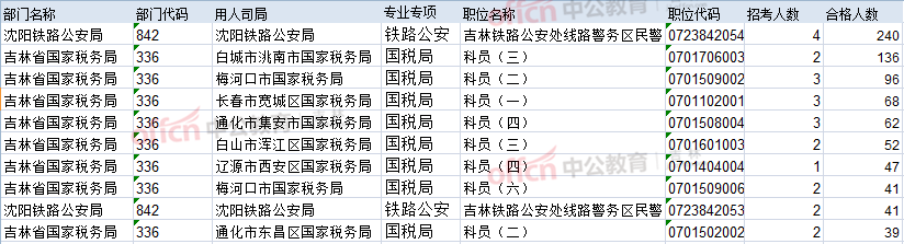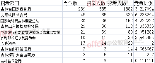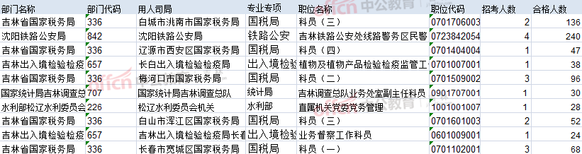 報(bào)名通過審核人數(shù)前十的職位主要集中在吉林省國(guó)稅局和國(guó)家統(tǒng)計(jì)局吉林調(diào)查總隊(duì),具體信息如下: