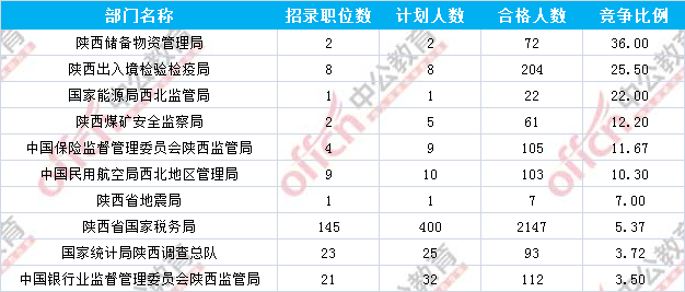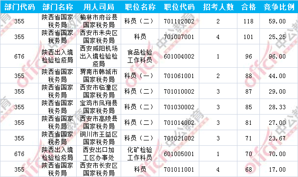 報(bào)名通過(guò)審核人數(shù)前十的職位主要集中在陜西省國(guó)家稅務(wù)局及陜西出入境檢驗(yàn)檢疫局兩大部門(mén),具體信息如下: