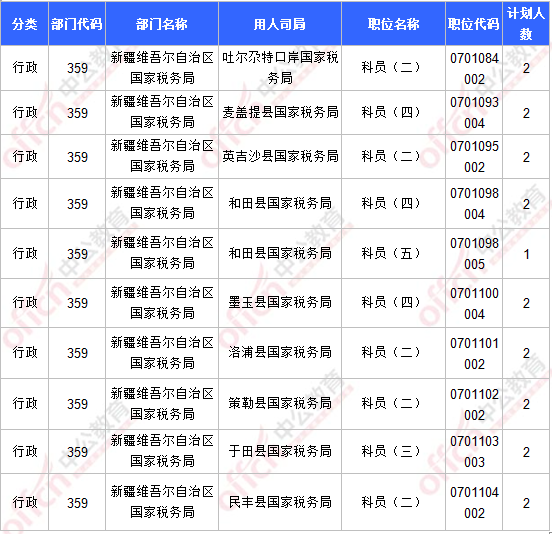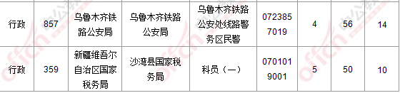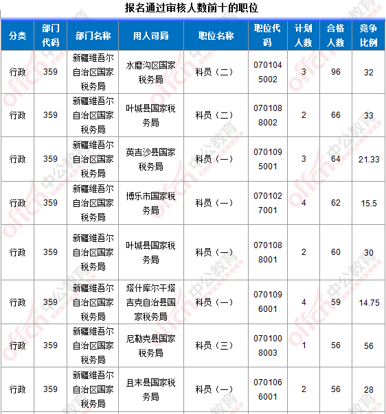 報名通過審核人數(shù)前十的職位主要集中在新疆維吾爾自治區(qū)國家稅務(wù)局、烏魯木齊鐵路公安局等部門,具體信息如下: