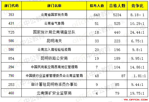 為幫助廣大考生更清晰的了解今日?qǐng)?bào)名情況,云南中公網(wǎng)校整理了審核通過(guò)人數(shù)部門排名,供廣大考生參考:
