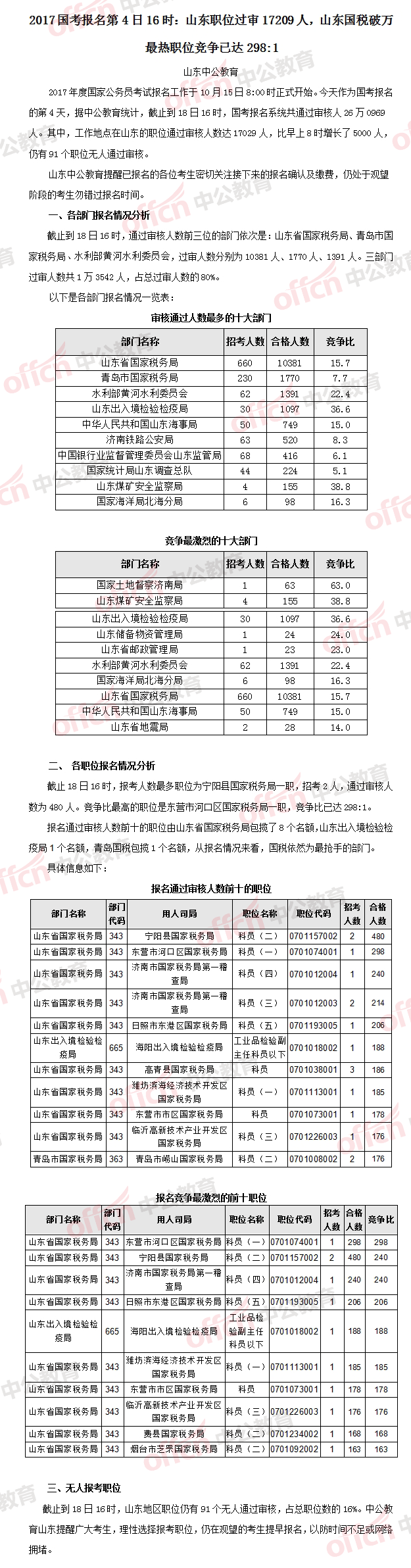 相關(guān)鏈接>>>2017國家公務(wù)員考試報名人數(shù)統(tǒng)計(山東地區(qū))【截至10月18日16時】