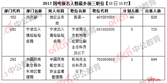 在報名人數(shù)最多前三職位中,中國民用航空局華東地區(qū)管理局中國民用航空浙江安全監(jiān)督管理局機(jī)場處主任科員及以下(職位代碼701003003)取代昨日的福建省南安市國家稅務(wù)局基層分局科員二這一職位,躋身前三甲,實力不容小覷。