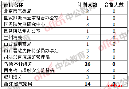 與國稅的程度形成鮮明對比的是,目前仍有12個部門“無人問津”,其中,烏魯木齊海關(guān)招錄26人、浙江省氣象局招錄14人,仍處于觀望態(tài)勢的考生可以重點考慮。