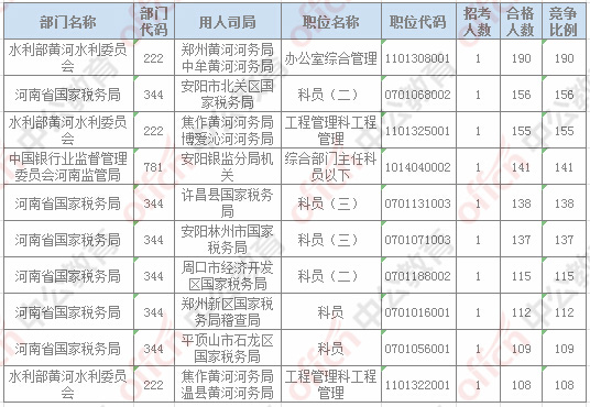 截止19日8時,招錄比例的職位為鄭州黃河河務局中牟黃河河務局辦公室綜合管理一職,招錄1人,截止19日8時通過人數(shù)為190人。