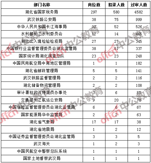 截止到10月19日8時(shí),湖北地區(qū)各部門通過審核人數(shù)如下: