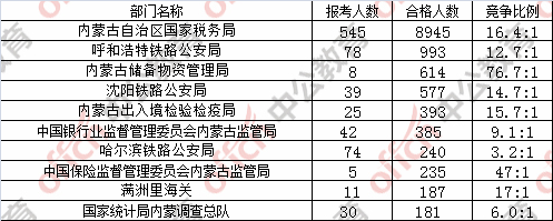 為幫助廣大考生更清晰的了解今日報名情況,內蒙古中公網(wǎng)校整理了審核通過人數(shù)前十位的部門,供廣大考生參考: