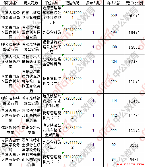 報(bào)名競(jìng)爭(zhēng)最激烈的前十的職位