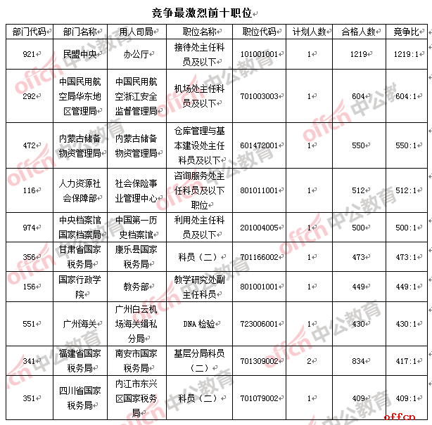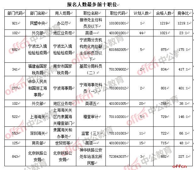 【截至19日16時】2017國考報名數(shù)據(jù):民盟中央摘得“雙冠”