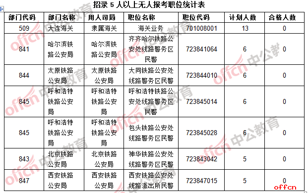 截止到20日8時(shí),仍有1123個(gè)職位無人通過審核,占總職位數(shù)的7.2%,無人報(bào)考職位涵蓋了各類部門,有中央級(jí)別的部門,比如公安部、工業(yè)和信息化部、財(cái)政部等等,也有很多工作地在各地區(qū)的部門,比如大連海關(guān)、廣東氣象局等等,中公網(wǎng)校分析,共有7個(gè)職位招錄人數(shù)在5人以上,其中大連海關(guān)海關(guān)業(yè)務(wù)(職位代碼701008001)招錄13人,機(jī)會(huì)較多,中公網(wǎng)校專家建議考生可以從這些職位中選取適合自己的。