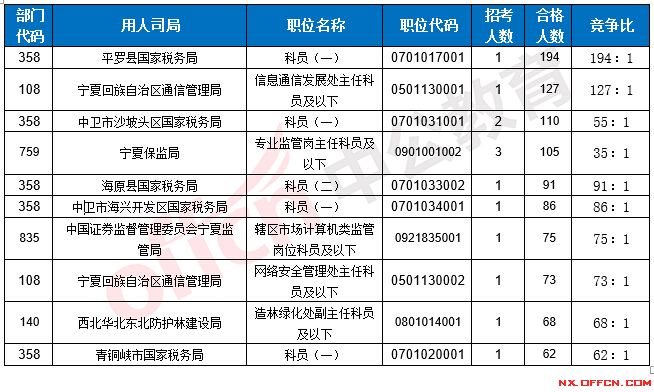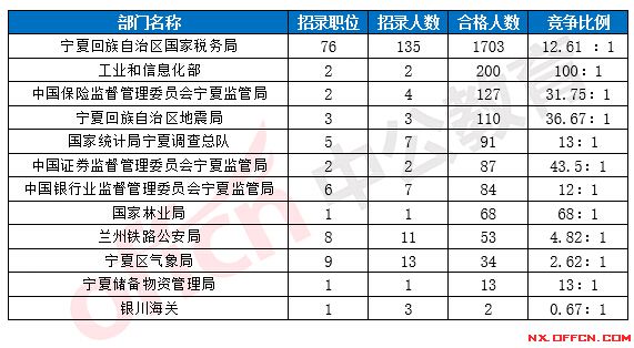 2017國(guó)考寧夏地區(qū)各部門(mén)報(bào)考情況