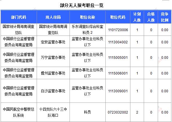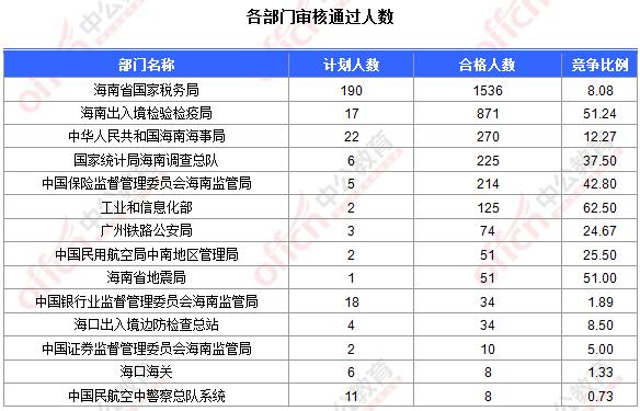 為幫助廣大考生更清晰的了解今日?qǐng)?bào)名情況,海南中公網(wǎng)校整理今天各部門的報(bào)名情況供廣大考生參考: