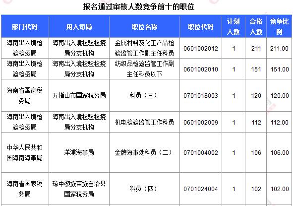 報(bào)名通過前十的職位具體信息如下: