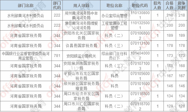 報名通過審核人數(shù)排名前列的職位主要集中在鄭州鐵路公安局、河南省國家稅務(wù)局,水利部黃河水利委員會,具體信息如下: