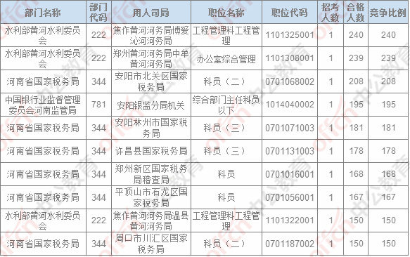 截止20日16時,招錄比例的職位為焦作黃河河務(wù)局博愛沁河河務(wù)局工程管理科一職,招錄1人,截止20日16時通過人數(shù)為240人。