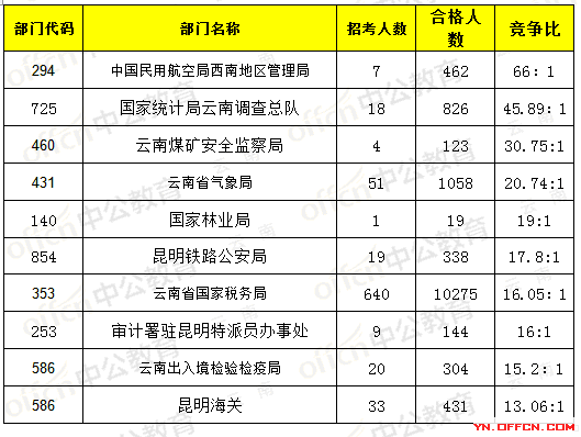 報(bào)名通過(guò)審核人數(shù)前十的職位主要集中在國(guó)家統(tǒng)計(jì)局云南調(diào)查總隊(duì)、云南省氣象局、云南省國(guó)家稅務(wù)局等部門(mén),具體信息如下: