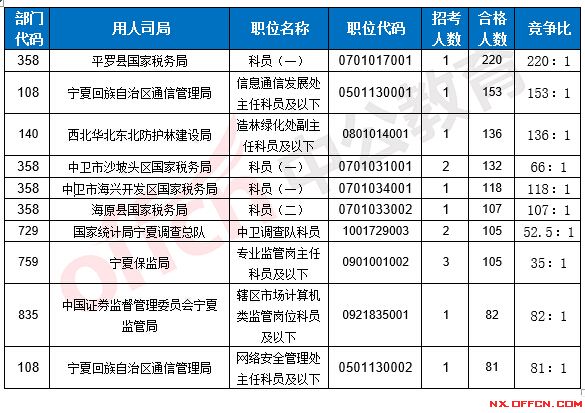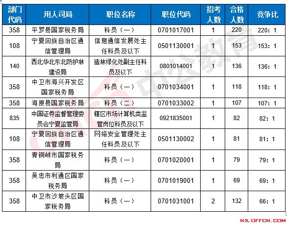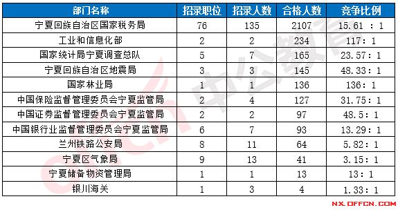 2017國考寧夏地區(qū)各部門報(bào)考情況