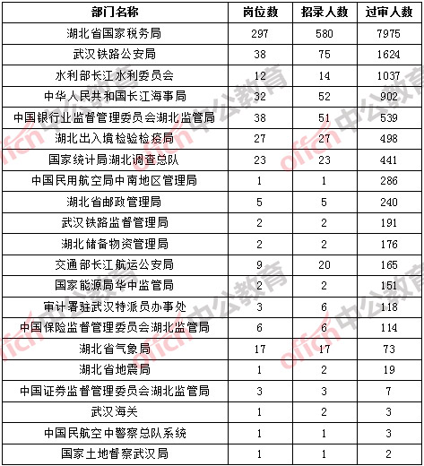 截止到10月20日16時(shí),湖北地區(qū)各部門通過審核人數(shù)如下:
