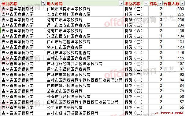 吉林省國家稅務(wù)局報名人數(shù)最多前20崗位