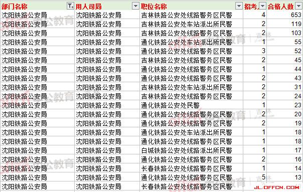 沈陽鐵路公安局報名人數(shù)最多前20崗位