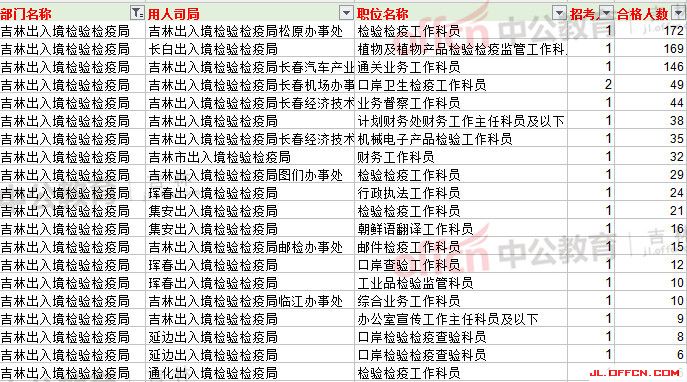 吉林出入境檢驗檢疫局報名人數(shù)最多前20崗位