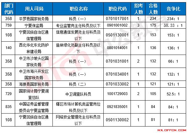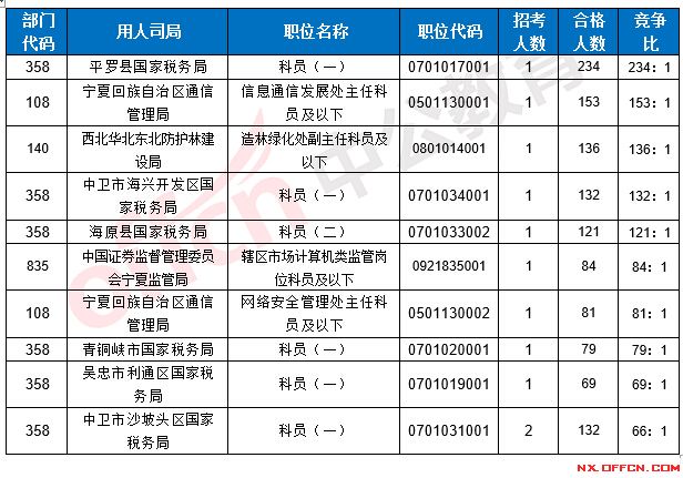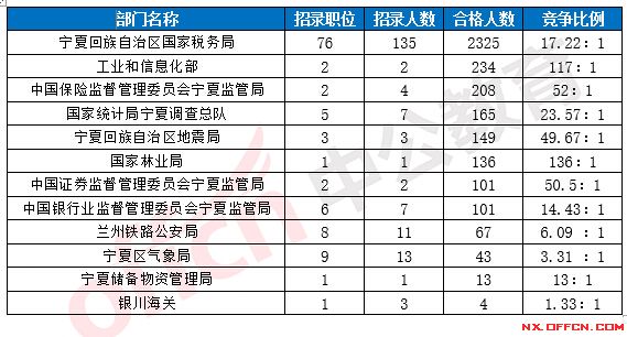 2017國考寧夏地區(qū)各部門報(bào)考情況