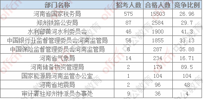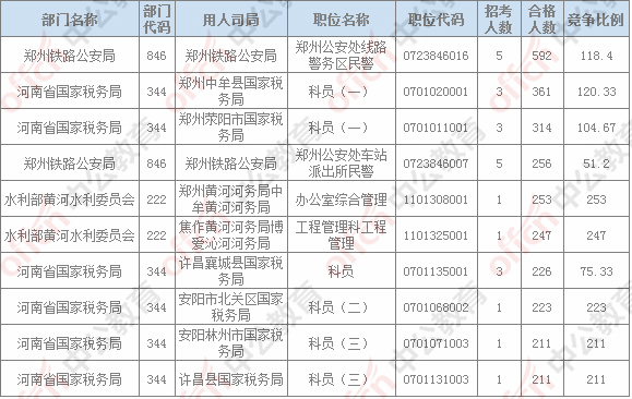 報名通過審核人數排名前列的職位主要集中在鄭州鐵路公安局、河南省國家稅務局,水利部黃河水利委員會,具體信息如下: