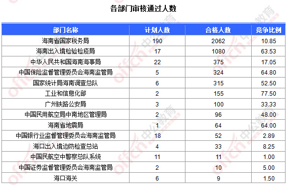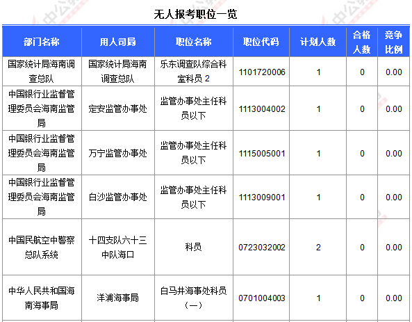 為幫助廣大考生更清晰的了解今日?qǐng)?bào)名情況,海南中公網(wǎng)校整理今天各部門的報(bào)名情況供廣大考生參考: