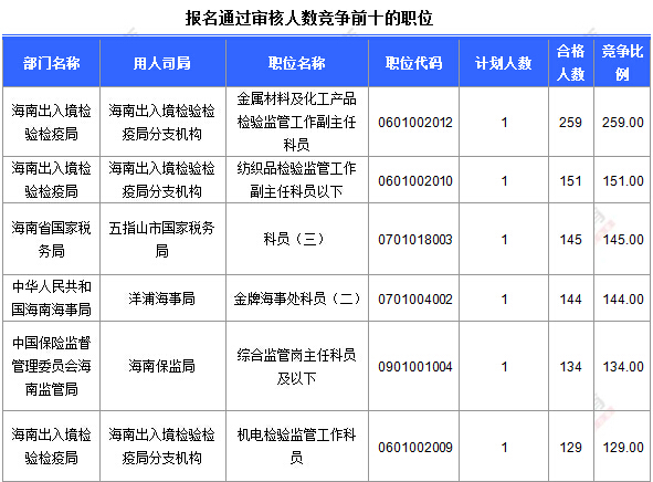 報(bào)名通過(guò)前十的職位具體信息如下: