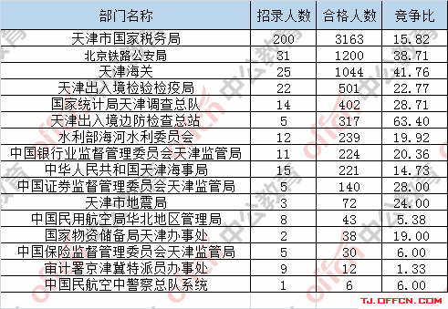 截止到21日16時(shí),通過審核人數(shù)前三位的部門依次是:天津市國家稅務(wù)局、北京鐵路公安局、天津海關(guān),三部門通過審核總?cè)藬?shù)達(dá)5407人,占通過審核總?cè)藬?shù)的70.7%。