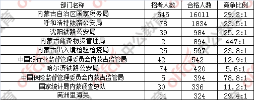 為幫助廣大考生更清晰的了解今日?qǐng)?bào)名情況,內(nèi)蒙古中公網(wǎng)校整理了審核通過(guò)人數(shù)前十位的部門,供廣大考生參考: