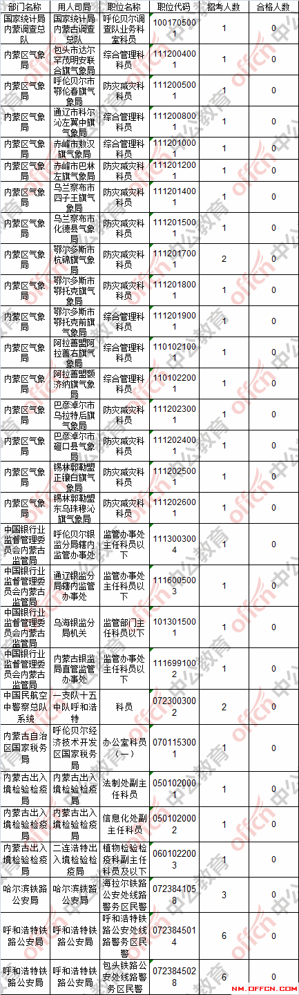 截止到21日16時(shí),工作地點(diǎn)在內(nèi)蒙古29個(gè)職位無(wú)人報(bào)考。具體職位如下: