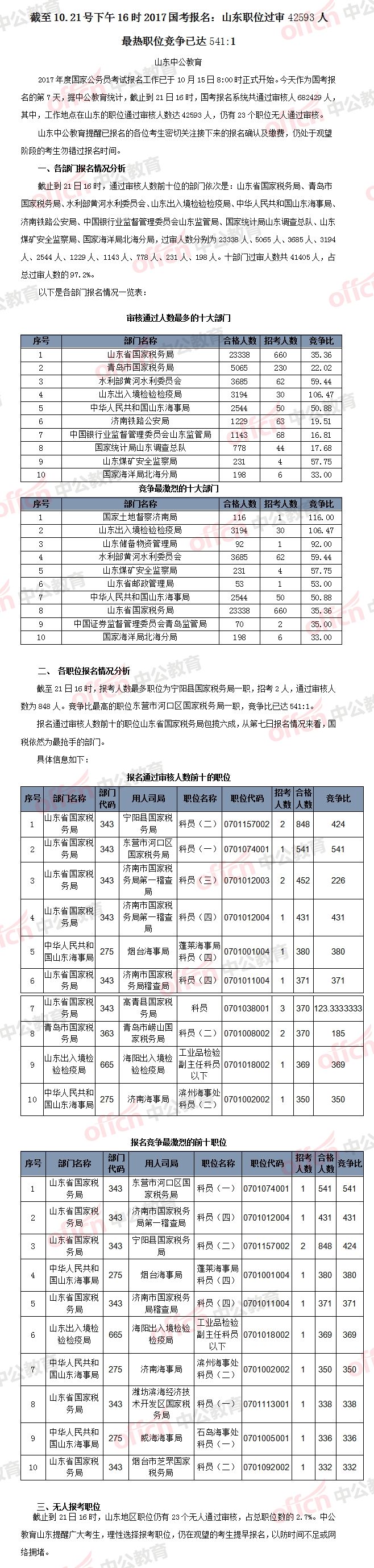 【截至21日16時(shí)】2017國考報(bào)名山東職位過審42593人 最熱職位競爭已達(dá)541:1